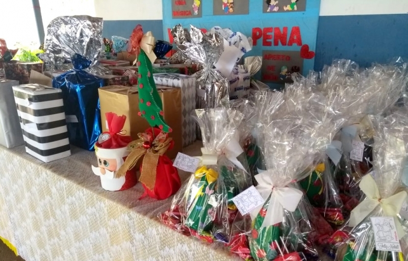 Além de presentes foram entregues pizza, refrigerante, doces diversos e até mini panetones.