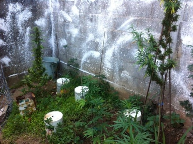 De acordo com a corporação, ao chegarem ao local, os agentes encontraram uma plantação de maconha no quintal.