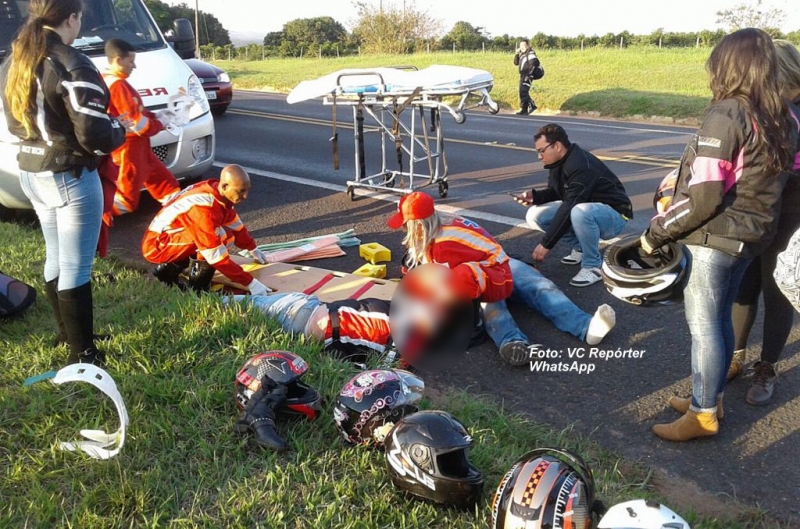 de motociclistas em Ourinhos. A moto que eles estavam se envolveu numa colisão com uma saveiro. As vítimas estão internadas no Hospital das Clínicas em Marília.