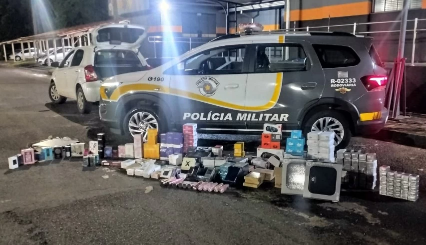 A operação foi realizada por equipes do Tático Ostensivo Rodoviário (TOR) em ação conjunta com a FICCO/SP, na rodovia Raposo Tavares, em Salto Grande, na região de Ourinhos. Durante a fiscalização, os policiais localizaram no porta-malas do veículo cerca de 300 produtos irregulares, todos sem documentação fiscal.