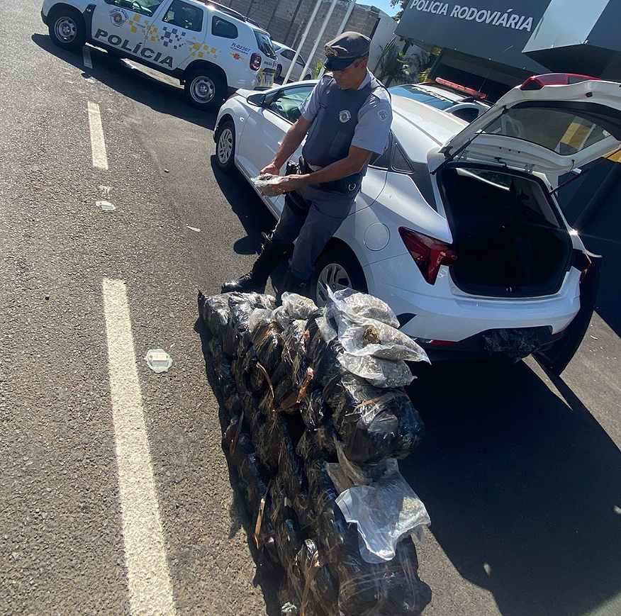 Mas, ao passar pela base da Polícia Rodoviária de Marília, na rodovia do Contorno, o veículo foi fiscalizado. Logo os patrulheiros perceberam o nervosismo dos ocupantes. Por isso, foi feita a vistoria e encontrados cerca de 170 pacotes de skunk no porta malas.