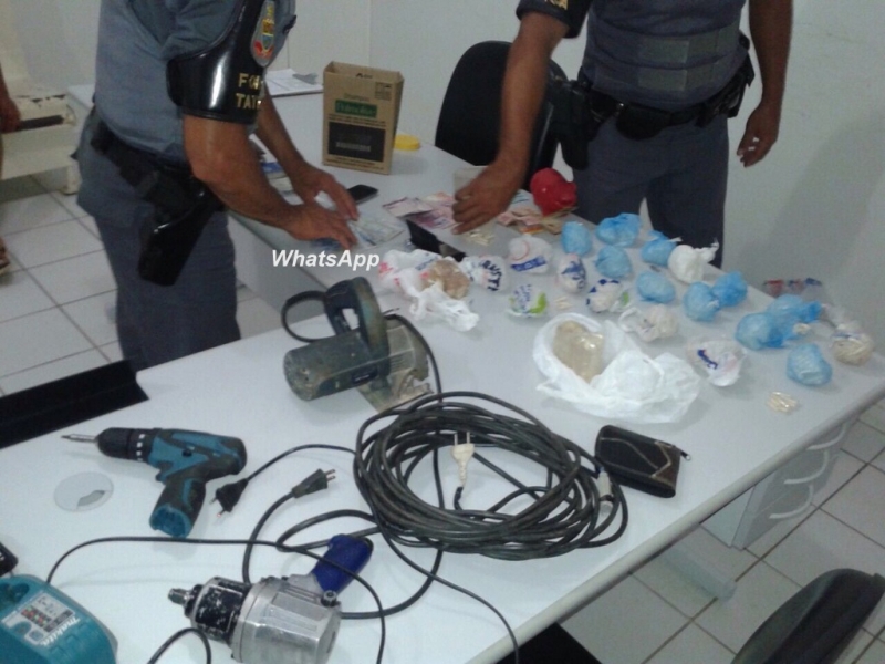 Policiais militares da Força Tática apreenderam na noite deste sábado (02) grande quantidade de drogas (principalmente pinos de crack) e também objetos que haviam sido furtados na favela do bairro Argollo Ferrão, na zona sul da cidade. Um casal foi preso em flagrante. O caso foi apresentado na Central de Polícia Judiciária, onde foi realizado o flagrante.