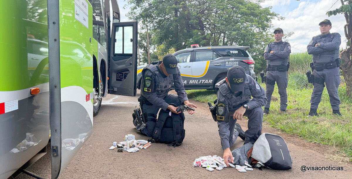 A operação do TOR (Tático Ostensivo Rodoviário) ocorreu nesta sexta-feira feira (16), durante uma ação da Operação Impacto na Rodovia Orlando Quagliato (SP-327), em Ourinhos. Os policiais deram ordem de parada à um ônibus de linha regular que fazia o itinerário Foz do Iguaçu/PR – São Paulo.