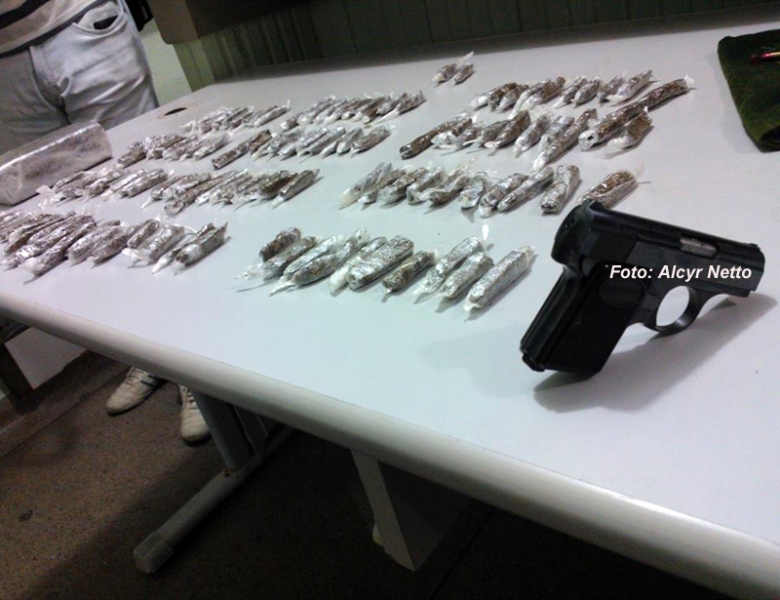 Um casal foi preso em flagrante acusado de envolvimento com o tráfico de entorpecentes e posse irregular de arma de fogo de uso permitido, na Vila Cavalcante, em Garça. Foram apreendidas 123 porções de maconha, meio tijolo pesando 470 gramas e uma pistola calibre 6.35, com dois carregadores municiados e farta munição.