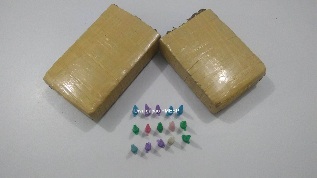 Com ele os policiais encontraram 15 pinos de crack e dois tijolos de maconha. Ele foi preso em flagrante pelo crime e encaminhado para Audiência de Custódia. Participaram da ocorrência o cabo Ferreira e soldado Guilherme, da 5ª Companhia da PM.