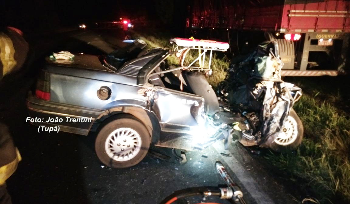 Os dois ocupantes (Maria Geni Peixe, de 52 anos; e Antonio Pereira Feitosa, de 29 anos), chegaram as ser socorridos pelo Corpo de Bombeiros de Tupã) mas morreram no local. O motorista da carreta não sofreu ferimentos.