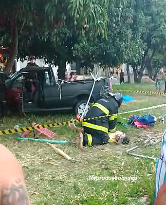Bombeiro faz massagem cardíaca para tentar salvar uma das vítimas do acidente.