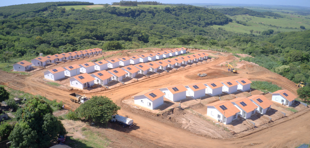 A obra mantém um ótimo desempenho e as casas já contam com pintura interna, placas para aquecedor solar, portas, janelas, pisos, azulejos e telhados.