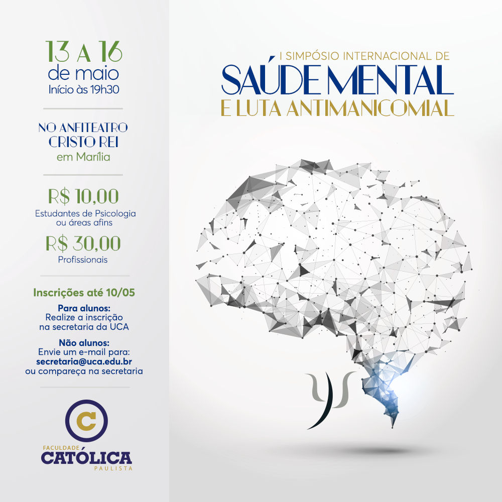 Com a participação de acadêmicos e profissionais da área, a Faculdade Católica Paulista realiza na próxima semana o 1º Simpósio Internacional de Saúde Mental e Luta Antimanicomial. Evento vai reunir profissionais brasileiros e também da Argentina.