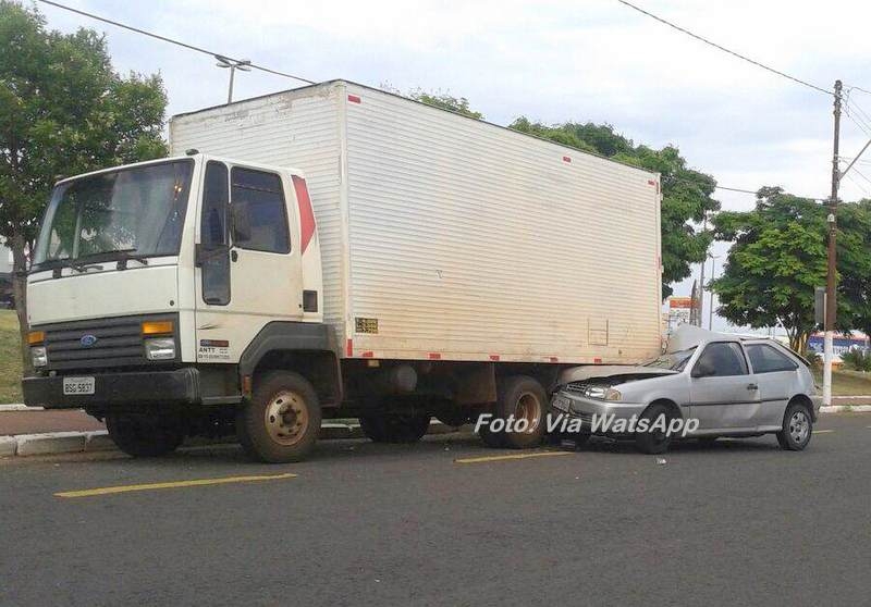 O acidente aconteceu na avenida das Indústrias. O caminhão, tipo baú, estava estacionado quando foi atingido na traseira por um Gol prata. Após a batida, o condutor decidiu sair correndo. Mas, os policiais militares agiram rápido e conseguiram alcançá-lo.