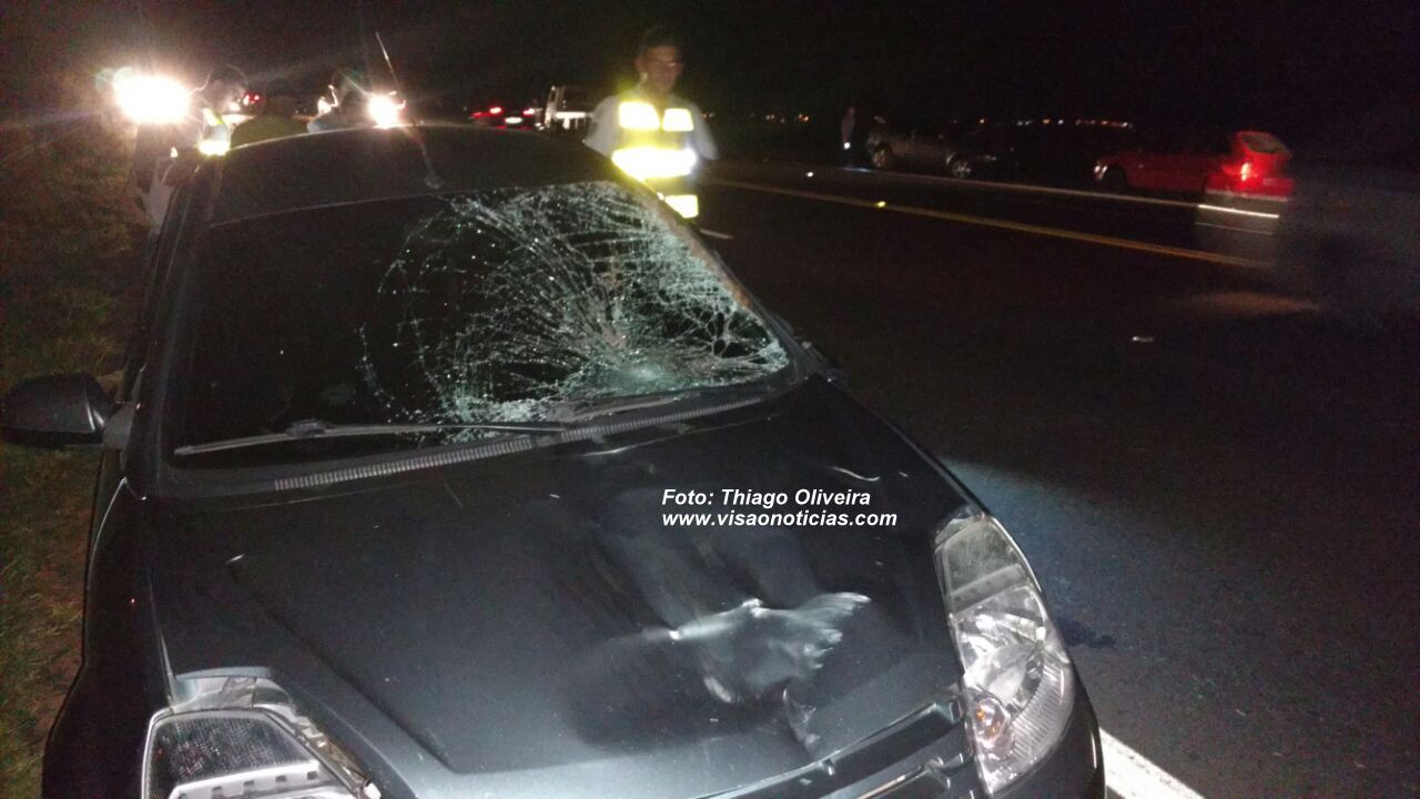 O condutor não conseguiu desviar a tempo do animal que posteriormente também foi foi atingido por mais dois carros (modelos Gol). Os três carros com placas de Marília.