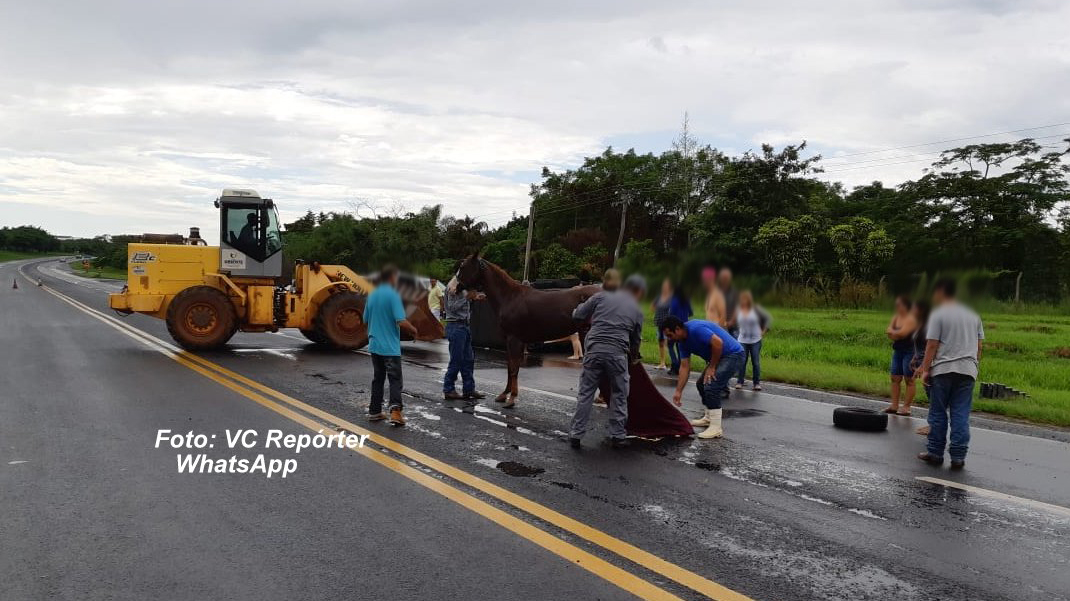 Um cavalo que participaria de uma prova de tambor em Marília teve vários ferimentos ao sofrer um acidente na rodovia SP-294, neste sábado. Equipe de salvamento do Corpo de Bombeiros de Marília foi mobilizada e a operação também envolveu até um trator para retirar o animal daquele compartimento de carga.