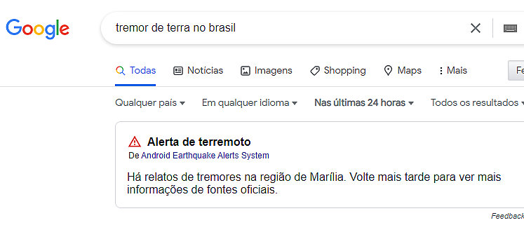 O próprio Google emitiu um alerta sobre o terremoto na região.