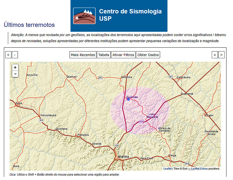 Aliás, há cerca de seis meses o próprio centro já havia confirmado outro terremoto em Guaimbê que teve magnitude 3.0 mR. "No passado, já foram registrados pequenos tremores na região. Eles aconteceram em 2014 e 2015", informam os pesquisadores da USP.