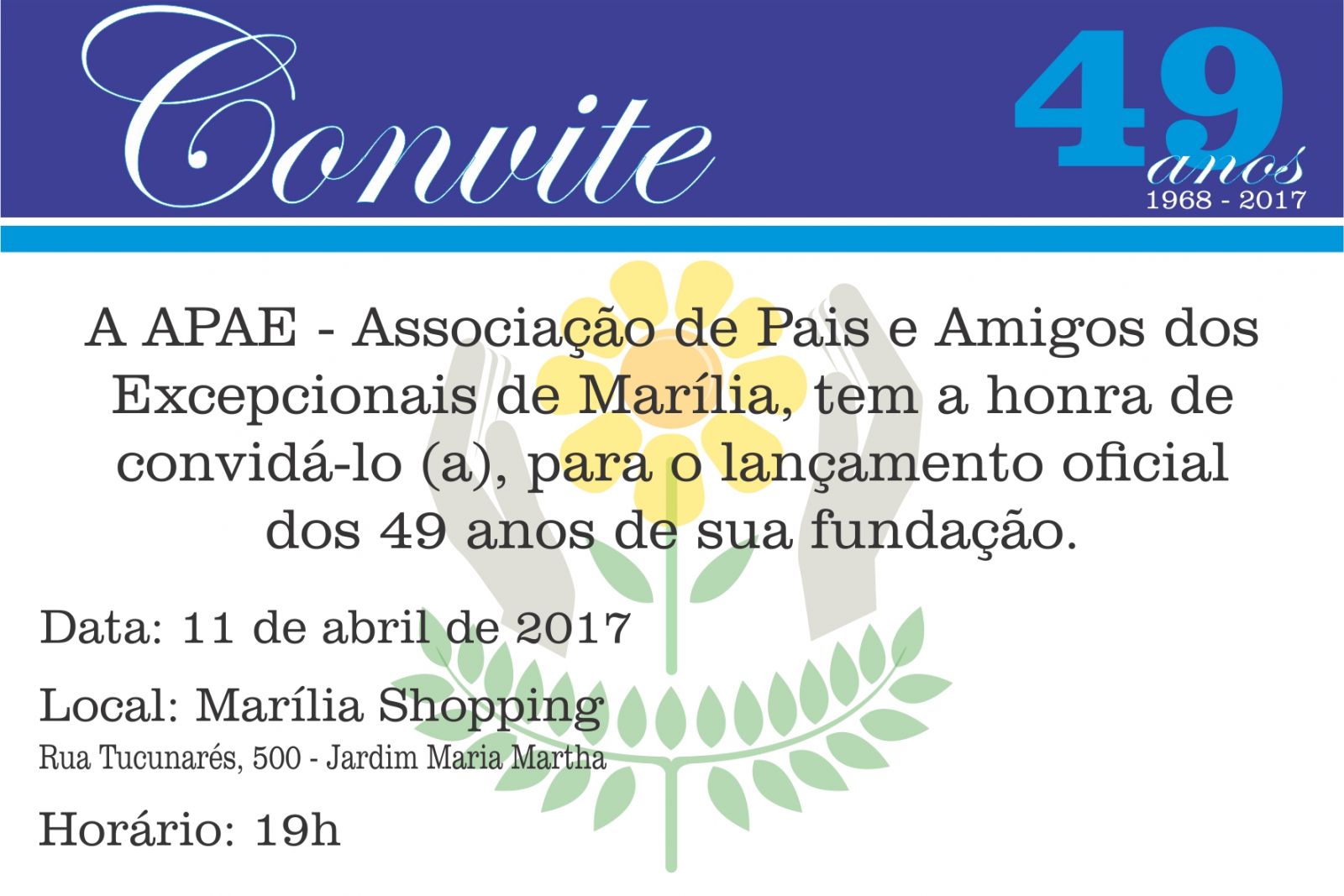 Nesta terça-feira (11), logo mais às 19h, a Associação de Pais e Amigos dos Excepcionais de Marília (APAE), fará na praça de eventos do Marília Shopping a cerimônia oficial que marca o início das comemorações alusivas ao aniversário da Instituição.