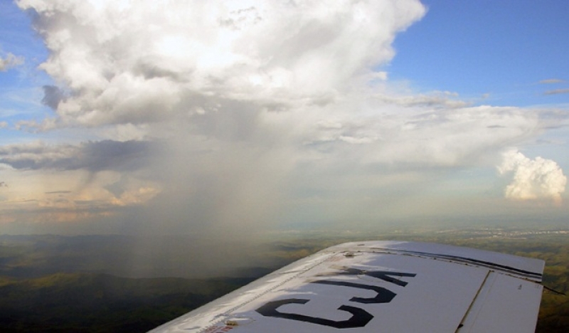 Segundo a empresa, o lançamento das gotículas no interior dessas nuvens, com correntes ascendentes, "promove mais colisões e aglutinações para formar então as gotas de chuva".