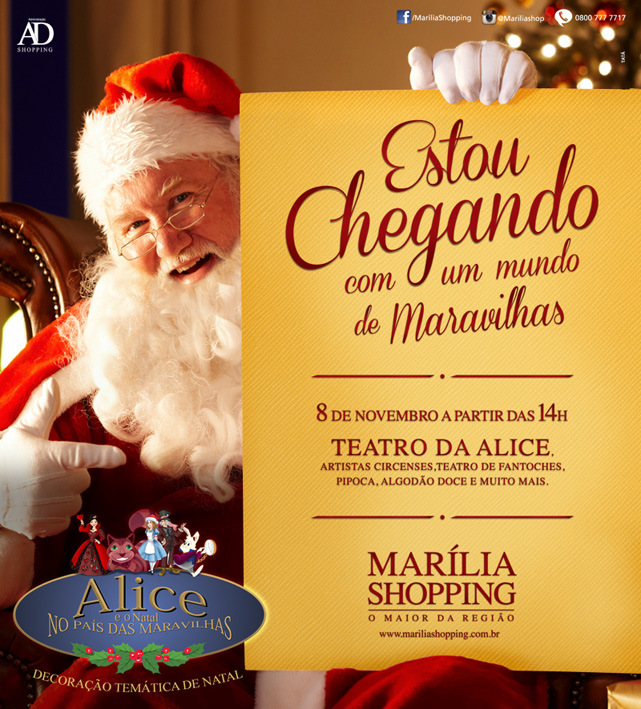 E, para a comemoração ser completa, um dos destaques fica por conta do Teatro da Alice, tema da decoração natalina do Marília Shopping nesse ano.
