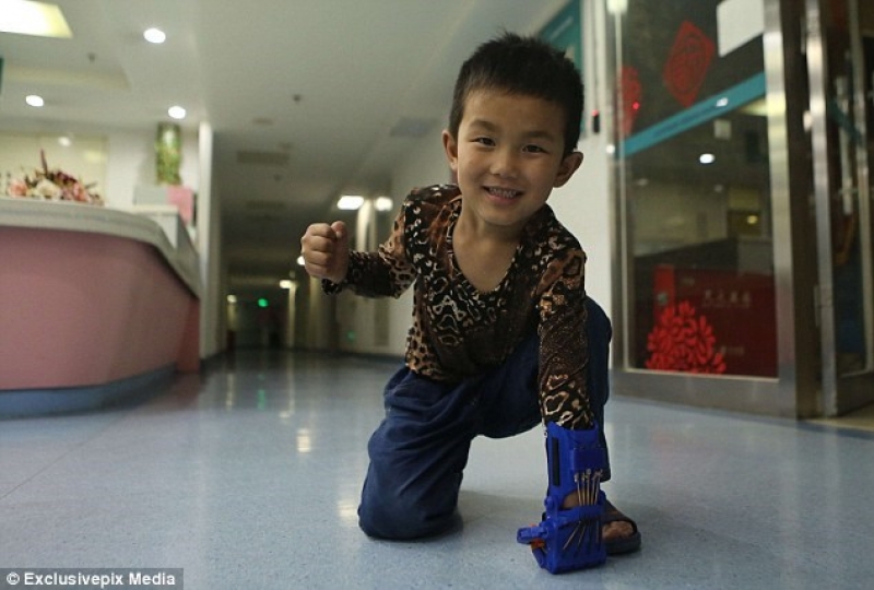 Na época, a família de Cheng, que vive na modesta província rural de Henan, não teve condições financeiras de adquirir uma prótese tradicional para o garoto, visto que esse tipo de aparato é terrivelmente caro no território chinês.