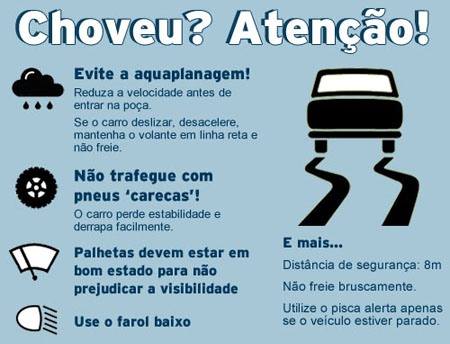- Mantenha o foco - É importante prestar atenção na estrada, nos outros carros e nos pedestres o tempo inteiro, mas a atenção deve ser redobrada na chuva, onde não se pode ver bem e a habilidade de se frear é comprometida.