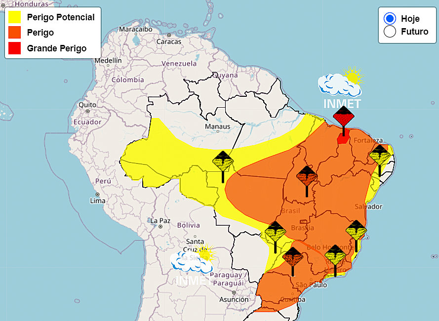 Até quarta-feira (21), a situação é considerada de "alerta", com possibilidade de chuva forte a qualquer hora do dia, segundo o Climatempo.
