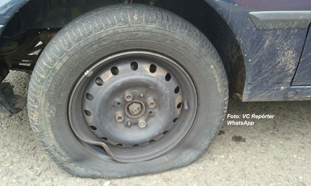 Pneu estourou após passar no buraco na Presidente Vargas.