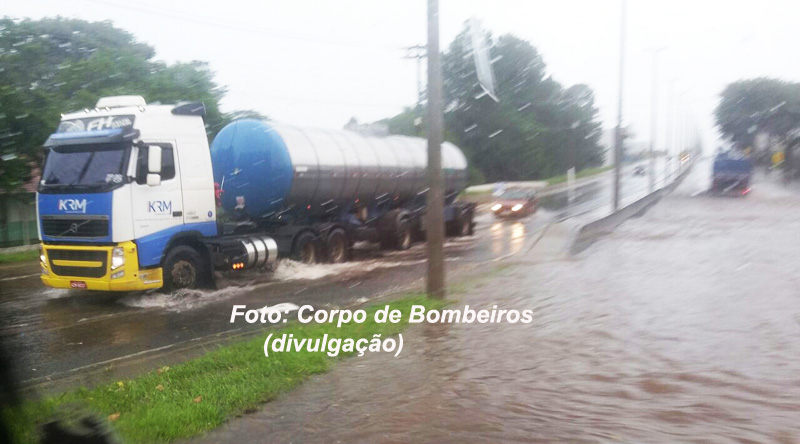 Perigo também no trecho urbano da BR-153, um local onde constantemente são registrados alagamentos. E hoje não foi diferente: a água subiu rapidamente e apenas caminhões se arriscavam a passar. Carros e motos tiveram que esperar o escoamento que demorou cerca de meia hora.