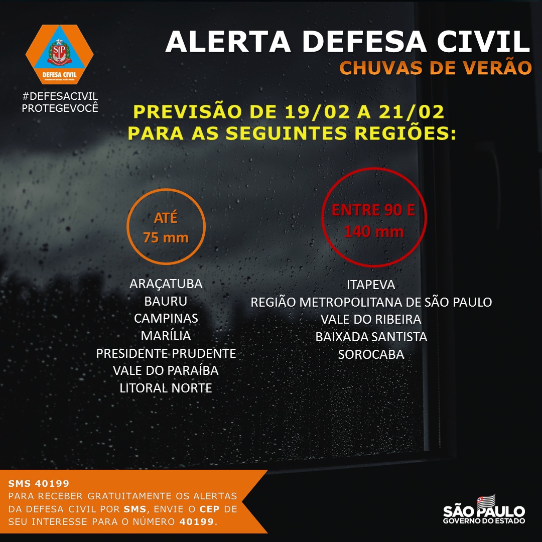 Depois de uma intensa onda de calor nos últimos dias, deve voltar a chover forte a partir desta quarta-feira nas regiões de Marília, Bauru e Presidente Prudente. Na quinta e sexta há previsão de temporais, inclusive com risco de queda de granizo. O alerta foi feito pela Defesa Civil do Estado em boletim divulgado nesta tarde.