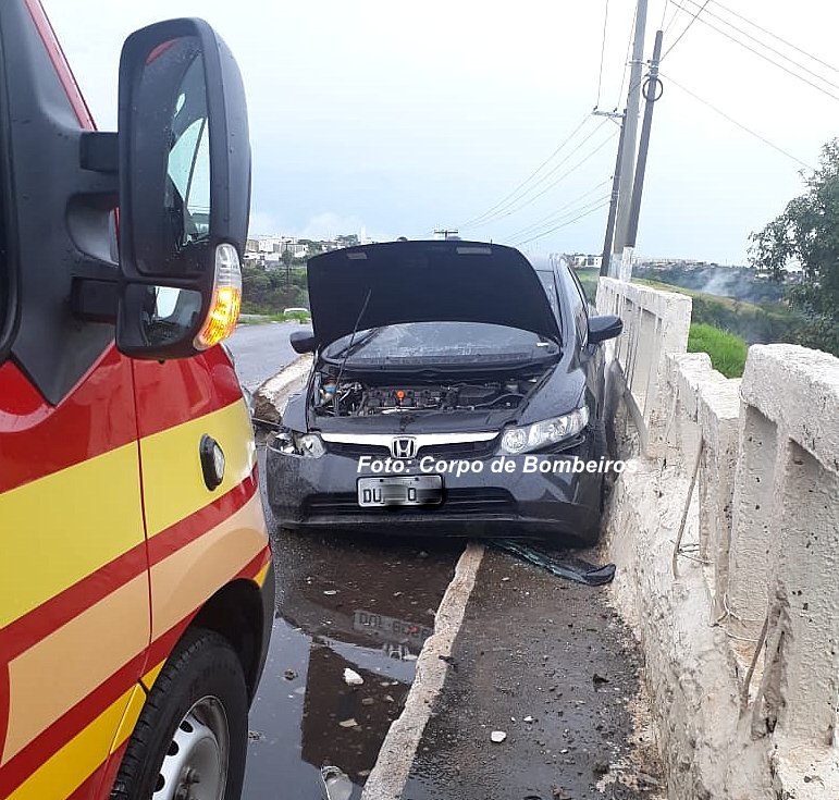 Carro bateu na lateral do viaduto sobre a rodovia do Contorno.