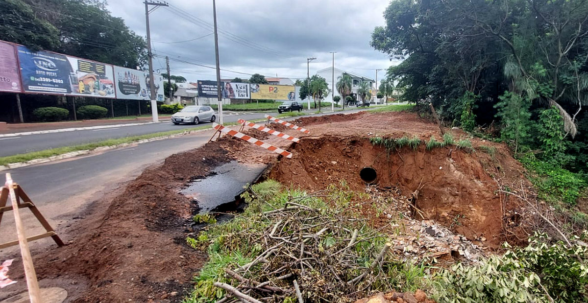 A erosão que se formou na semana passada em uma área de preservação permanente (APP) ao lado da avenida, destruindo parte das redes de galeria de águas pluviais e de esgoto, em frente ao Marília Shopping. O trecho liga a rodovia do Contorno à avenida Santo Antonio, além de ser a principal ligação dos bairros Vila Flora II e III à cidade.