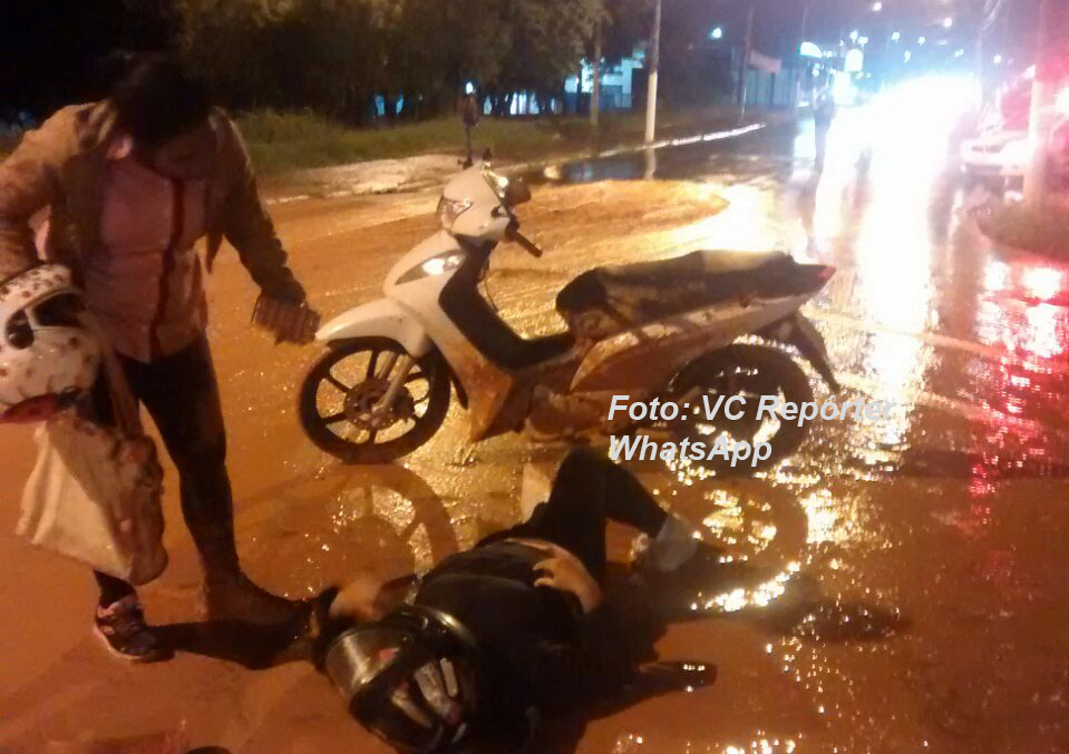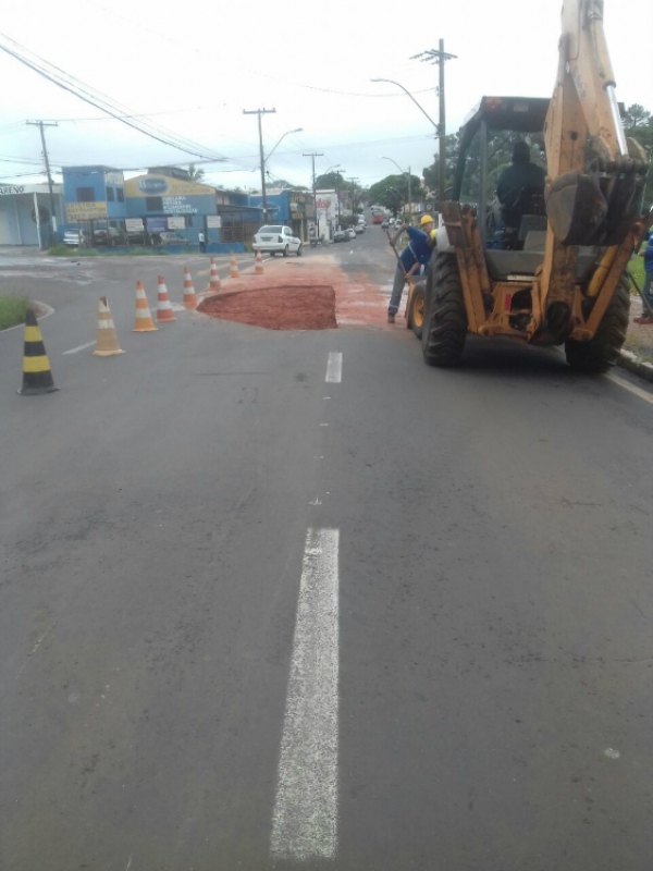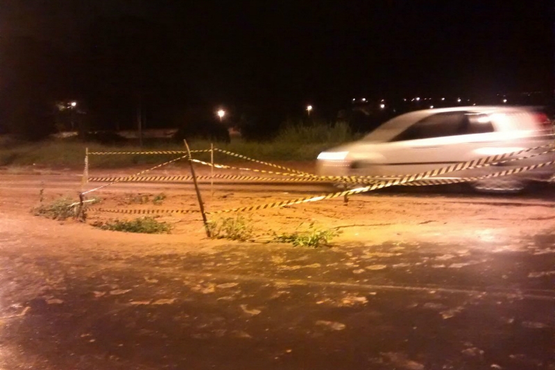 Duas ocupantes de uma moto caíram e sofreram ferimentos. A dona de casa Flávia Monteiro teve dois pneus estourados ao passar pela cratera.