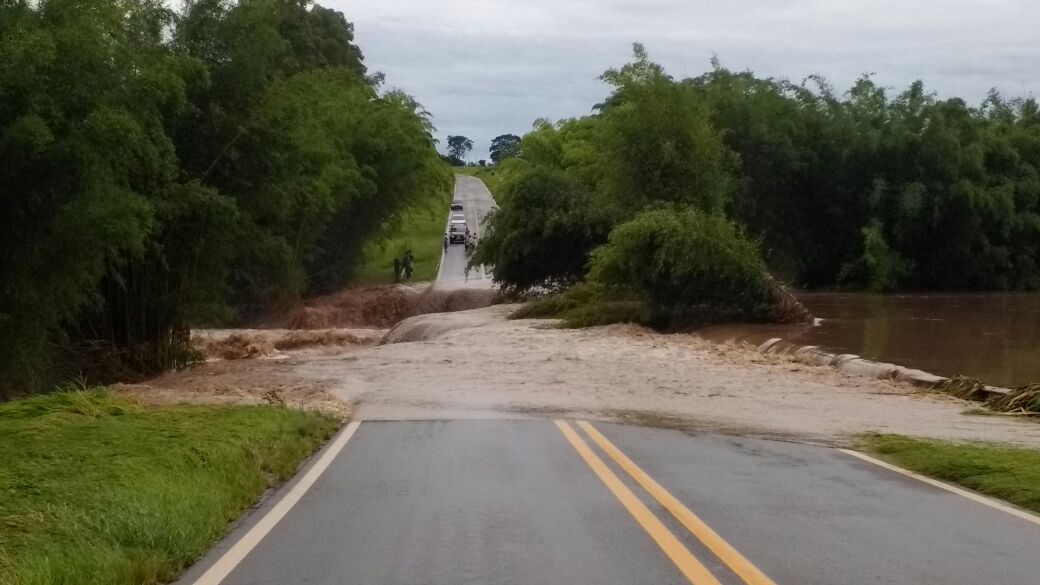Rio Iacri transbordou interditando rodovia.