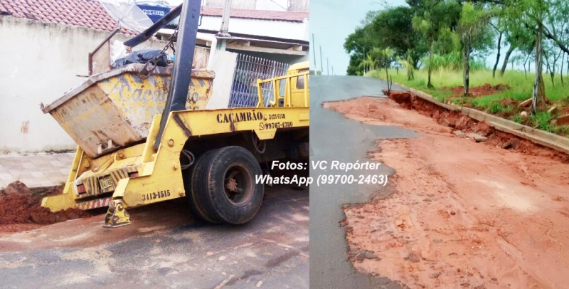 Problema se repete: DAEM recupera tubulação, coloca terra e Codemar não tapa. Bairro pode ficar isolado e caminhão afunda na cratera.