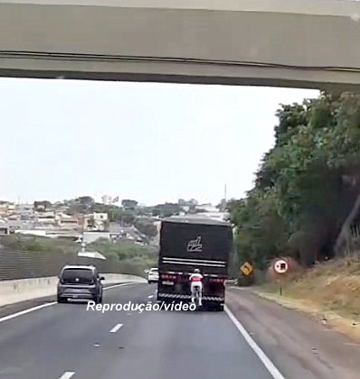 Um vídeo que está circulando nas redes sociais mostra uma cena bastante perigosa em Marília: um ciclista foi flagrado pegando "carona" na traseira de uma carreta em plena pista da rodovia do Contorno. De acordo com a Polícia Rodoviária Estadual, cenas como esta aumentam ainda mais o risco de acidentes neste trecho que é bastante perigoso e onde nesta semana uma motociclista perdeu a vida durante um engavetamento.