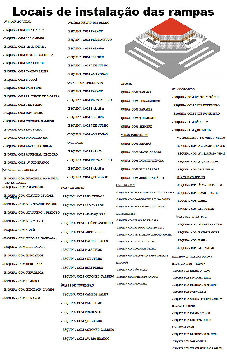 A Prefeitura lançou nesta semana um projeto que prevê a implantação de 489 rampas de acessibilidade, garantindo a mobilidade facilitada para pessoas com deficiência, idosos e até bebês em carrinhos. De acordo com a empresa vencedora da licitação, a meta é executar o projeto em três meses.