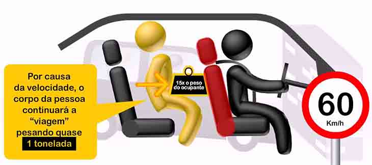 • Na hora de um acidente, o passageiro de trás é jogado contra o banco dianteiro com o peso de um elefante;
