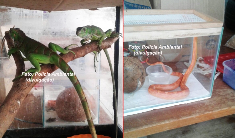 Os investigadores encontraram os animais numa das casas que foram vistoriadas com autorização judicial (mandados de busca e apreensão). Na rua Amapá, foram encontradas as cobras e iguanas, em cativeiro e sem licença. O dono seria um rapaz de 18 anos que foi multado em R$ 2.800,00 e ainda deve responder por crime ambiental. Participaram da fiscalização os cabos Fernandes e Mendes, além do soldado Wagner.