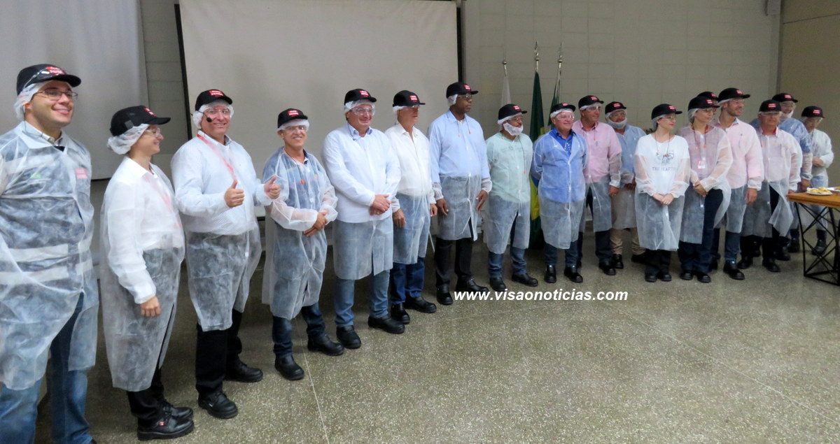 Foto oficial das lideranças antes de conhecer a fábrica e o novo equipamento de rotulagem.