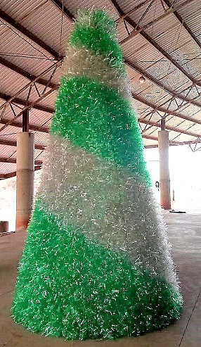 Parte das 244.369 PETs coletadas por alunos de escolas municipais foi utilizada na decoração de Natal da cidade