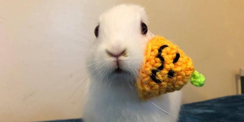Tudo começou com uma prótese padrão, como a de um coelho. Mas hoje o filhote já tem uma verdadeira coleção, exibida em sua conta no Instagram. Tem coroa de flores, orelhas de rato e até um chapéu de abóbora para entrar no clima do Halloween. Não é uma gracinha?