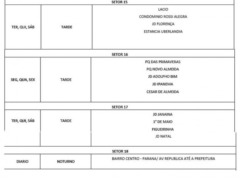 Veja na GALERIA DE FOTOS o cronograma da coleta de lixo nos bairros atendidos pela Prefeitura.