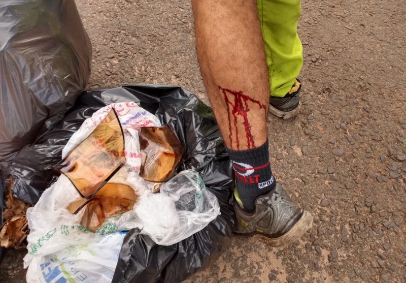 Um coletor que fazia o recolhimento do lixo na Vila Hípica, zona sul da cidade se cortou com um caco de vidro misturado junto ao lixo doméstico. De acordo com informações os servidores faziam "os montes" dos sacos, quando um dos coletores sofreu um corte profundo na parte inferior da perna esquerda atingida pelo vidro.