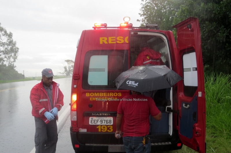 Chovia muito durante o atendimento do Corpo de Bombeiros. A vítima, porém, não quis ser encaminhada ao hospital: