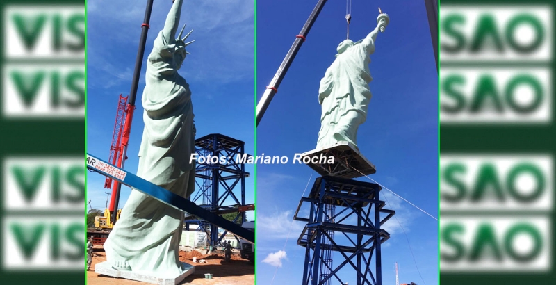 O portal Visão Notícias recebeu diversas fotos de internautas que acompanharam a operação de colocação da estátua, com a utilização de um guindaste.