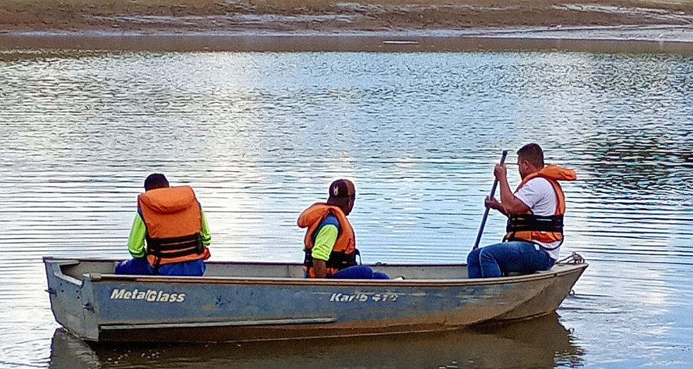 Funcionários da RIC fazendo limpeza de aeradores na represa Cascata, para melhorar a oxigenação da água.