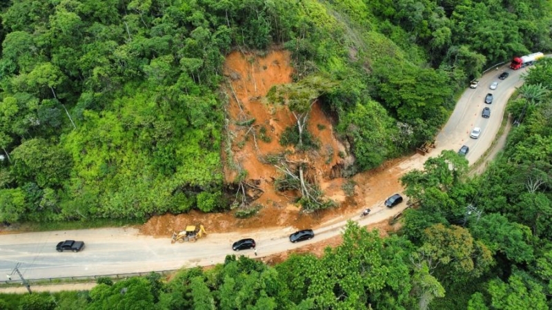 A rodovia Mogi-Bertioga segue completamente bloqueada, sem previsão para liberação. A principal rota alternativa entre o litoral norte de SP e São Paulo é a Rodovia dos Tamoios (SP-99), que está liberada.