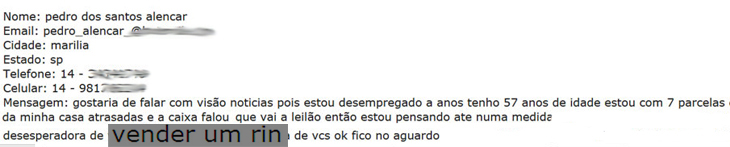 Diante disso, ele enviou um e-mail ao portal Visão Notícias mostrando o seu desespero e pedindo ajuda. Sem saída, ameaça até cometer um ato que é considerado um crime no Brasil: vender um dos rins.