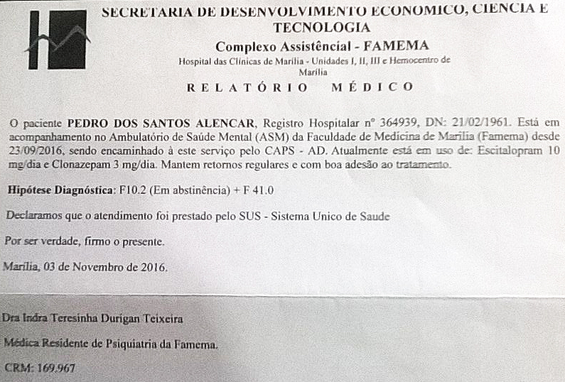 Aos 57 anos, o sr. Pedro dos Santos Alencar, morador em Marília, sempre teve uma vida muito ativa. Dividia o seu tempo como dono de uma oficina mecânica, depois