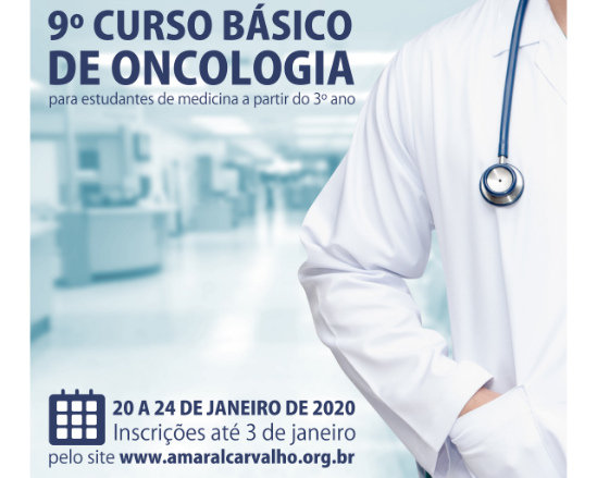 O Hospital Amaral Carvalho (HAC) abriu as inscrições para seleção do 9º Curso Básico de Oncologia (CBO), programa de férias para estudantes de medicina a partir do terceiro ano. O evento gratuito tem vagas limitadas e será entre os dias 20 e 24 de janeiro de 2020, em Jaú/SP.