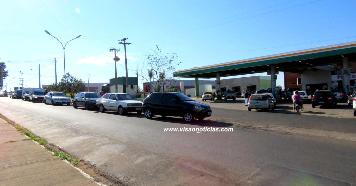 Fila no posto Ecológico: dono resolveu baixar os preços do diesel e gasolida aditivada.