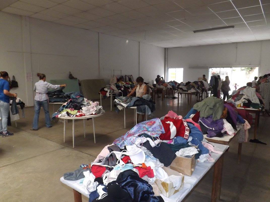 tradicional bazar da pechincha. O evento está comercializando roupas, sapatos, utensílios domésticos, entre outros materiais doados à entidade e em bom estado de conservação.
